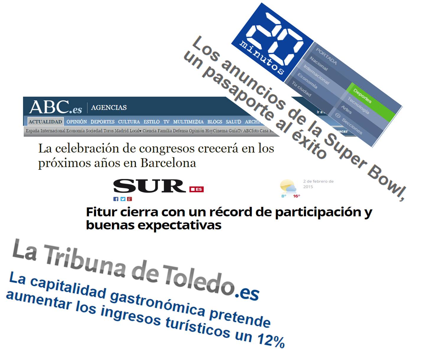 Ayer, al inaugurar el blog, pedía como único deseo que este año nos dejara buenas, o al menos esperanzadoras, noticias para la industria de eventos. Dicho y hecho, al hojear la prensa esta mañana una se queda con buen sabor de boca: Fitur bate récord de participación, las marcas siguen apostando por la visiblidad que aportan competiciones de las características de la Super Bowl, Madrid y Barcelona siguen a la cabeza en el ranking europeo MICE (Meetings, Incentives, Conferences, Exhibitions) y el binomio turismo & eventos funciona.